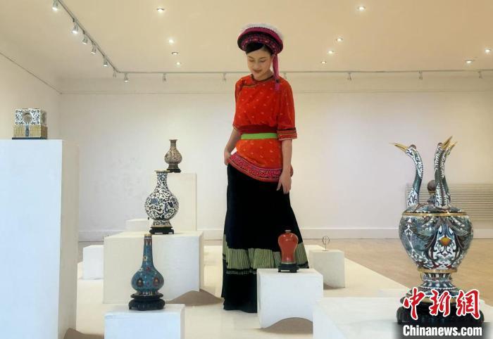 據(jù)介紹,阿紫香是一位中國(guó)白族藝術(shù)家,師從工藝美術(shù)大師霍鐵輝,專注于景泰藍(lán)、雕塑、油畫等多媒介創(chuàng)作。她的作品植根于中國(guó)傳統(tǒng)文化,尤其是景泰藍(lán)這一工藝。她并非停留于傳統(tǒng)的復(fù)刻,而是在當(dāng)代語(yǔ)境中探索新的表達(dá)方式。展覽現(xiàn)場(chǎng),阿紫香為在場(chǎng)人士講述參展作品背后的故事,并現(xiàn)場(chǎng)展示景泰藍(lán)制造工藝流程,