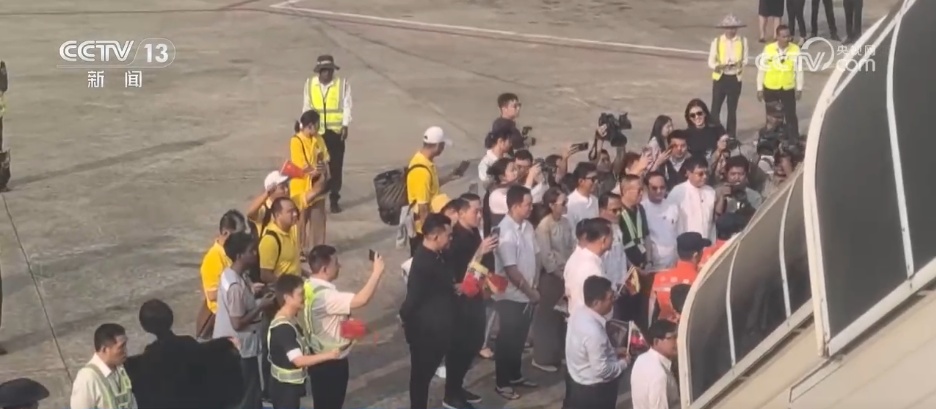 飛機(jī)降落在仰光國際機(jī)場,雖然還沒有下飛機(jī),但是緬甸方面的工作人員包括民眾已經(jīng)在飛機(jī)下迎接了。他們手中拿著緬甸和中國的國旗,搖動的是一份濃濃的胞波情誼。