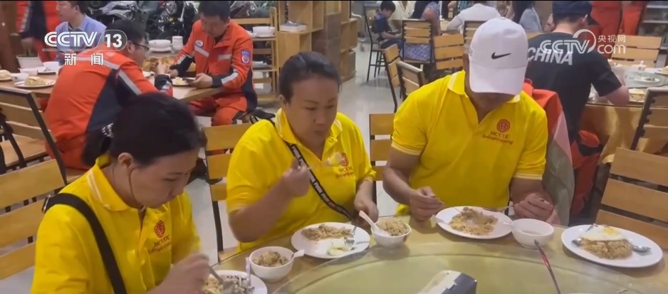 夜幕降臨,在當(dāng)?shù)氐囊患胰A人餐館,隊員們吃上了來到緬甸的第一頓飯,一頓簡單的炒飯。