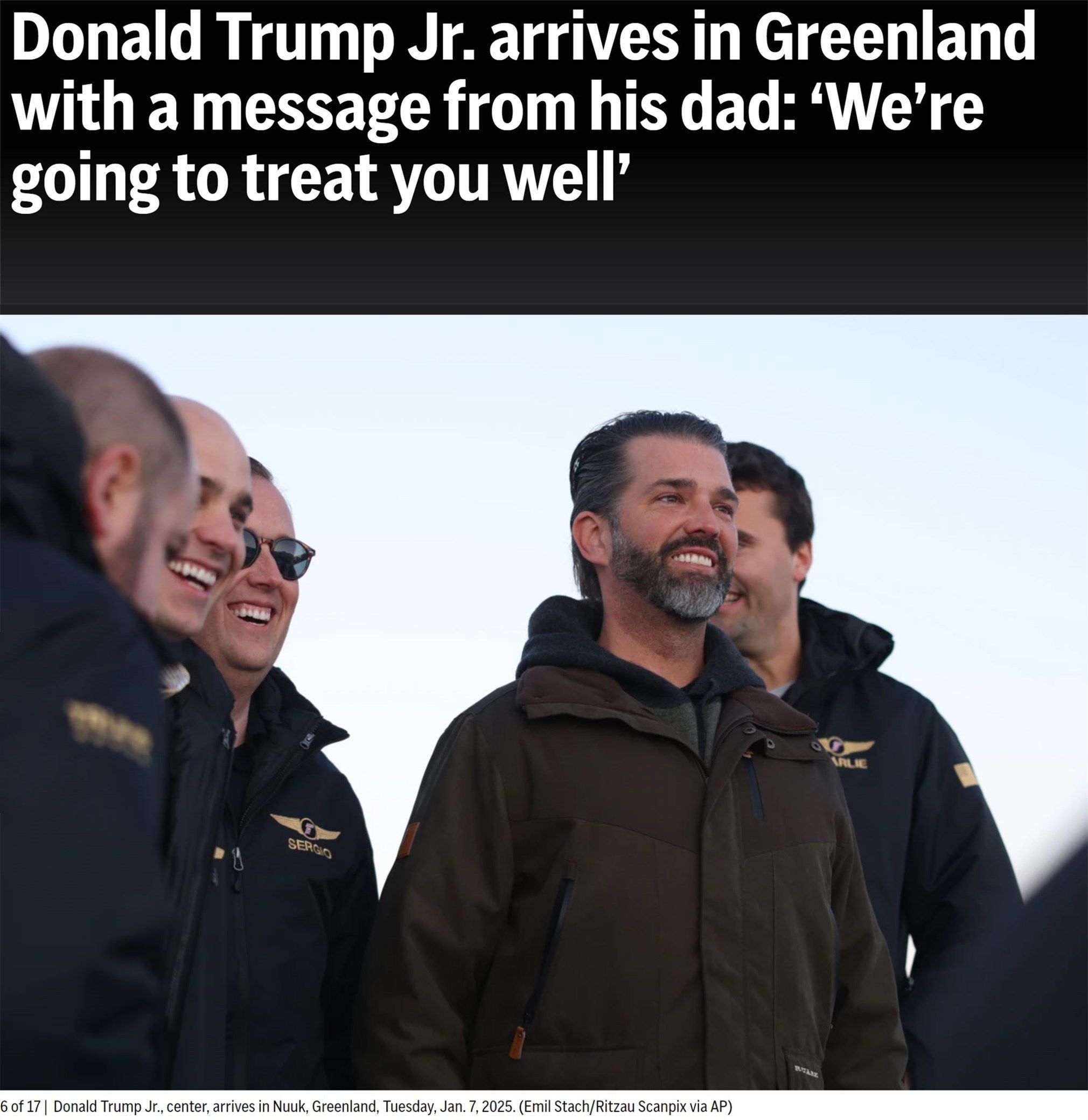 為了讓“奪島”計(jì)劃早日成真,除了美國(guó)代表團(tuán)不請(qǐng)自來(lái)的訪(fǎng)問(wèn)計(jì)劃,特朗普長(zhǎng)子小唐納德·特朗普早在年初就已經(jīng)借私人旅游的名頭去島上“打前站”。