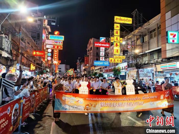 夜幕下,徽州非遺民俗巡游的花燈與唐人街的霓虹燈交相輝映,映照出中泰文明交融的美好圖景。