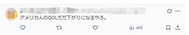 還有日本網(wǎng)友指出,美國(guó)的關(guān)稅政策,會(huì)導(dǎo)致美國(guó)人的生活質(zhì)量下降。