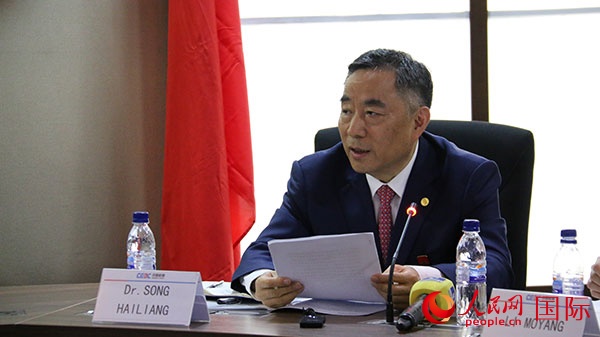 尼日利亞聯(lián)邦科技部納吉致辭。人民網(wǎng)記者 姜宣攝