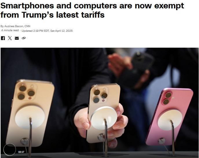 美國(guó)海關(guān)與邊境保護(hù)局發(fā)布的文件顯示,這些產(chǎn)品被排除在政府對(duì)貿(mào)易伙伴實(shí)施的所謂“對(duì)等關(guān)稅”之外?;砻獾漠a(chǎn)品適用于4月5日以后進(jìn)入美國(guó)的電子產(chǎn)品,已經(jīng)支付的“對(duì)等關(guān)稅”可以尋求退款。
