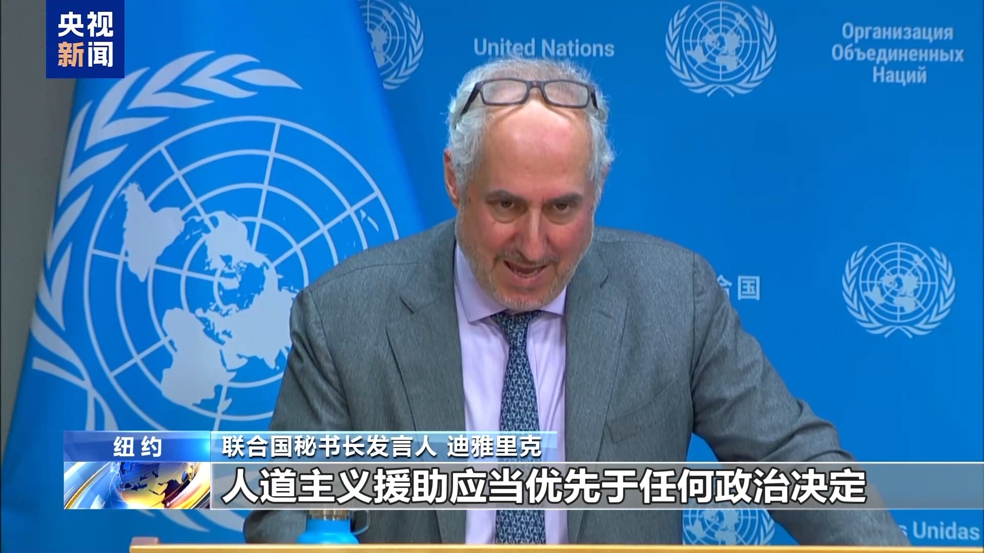聯(lián)合國秘書長發(fā)言人 迪雅里克:人道主義援助應(yīng)當(dāng)優(yōu)先于任何政治決定,我想安理會也通過了相關(guān)決議。我們也非常明確地表示,人道援助應(yīng)當(dāng)充分提供給所有有需要的人,這是國際法的要求。