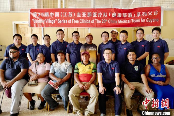 義診結(jié)束后,圭亞那莫萊科拜村酋長、部分村民、印第安事務(wù)部陪同人員和中國醫(yī)療隊(duì)隊(duì)員合影留念。第20期中國(江蘇)援圭亞那醫(yī)療隊(duì)供圖
