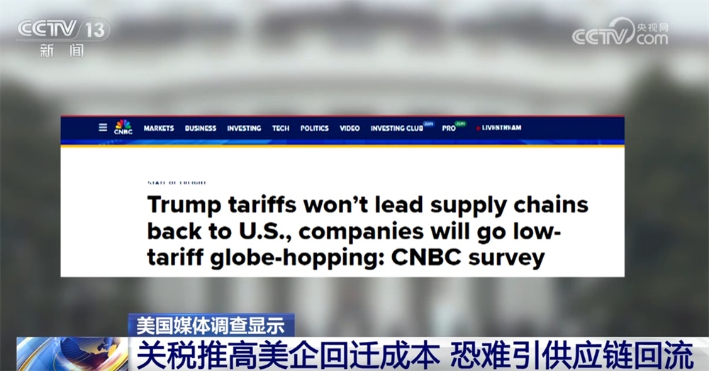 央視網(wǎng)消息:15日,美國消費者新聞與商業(yè)頻道公布了一份對380家美國企業(yè)及商業(yè)機構的問卷調查。結果顯示,盡管特朗普政府宣稱制造業(yè)回流浪潮將至,但多數(shù)受訪企業(yè)和機構認為,重建美國本土供應鏈可能導致成本翻番,企業(yè)更可能在全球范圍內(nèi)尋找低關稅國家布局。