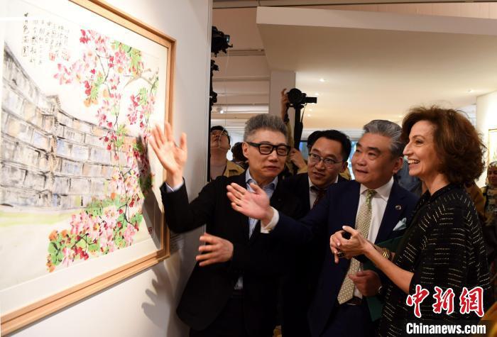 本次活動(dòng)的文化展覽主題為“春花爛漫”,展示了中國古老的書法藝術(shù),通過篆書、隸書、草書呈現(xiàn)了春意盎然、百花爭艷的意境。參展作品中包括當(dāng)代中國畫大師郭怡孮與張立辰的花鳥畫,通過獨(dú)特的寫意風(fēng)格完美展現(xiàn)了中國傳統(tǒng)藝術(shù)。展覽還展出了由郭怡孮與中國常駐聯(lián)合國教科文組織代表團(tuán)副代表王盈為慶祝聯(lián)合國中文日合作完成的作品《教科文組織總部的春天》。