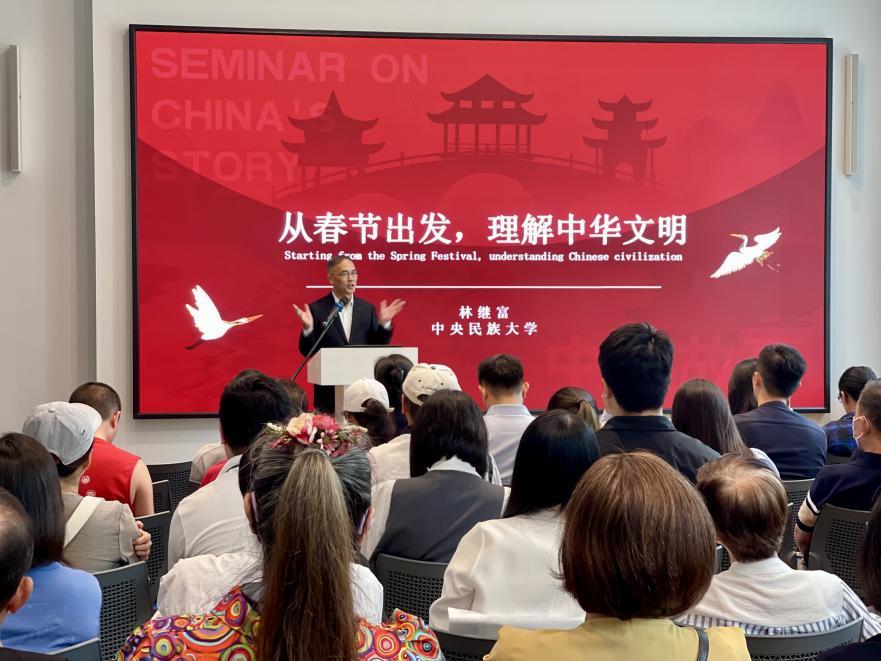 在講座中,林繼富教授圍繞“春節(jié)”這一中華優(yōu)秀傳統(tǒng)文化的重要載體,從文化史、民俗學(xué)與社會記憶等角度,系統(tǒng)闡釋中華文明的精神內(nèi)涵與價值理念,助力海外民眾深化對中華文化的理解與認同。