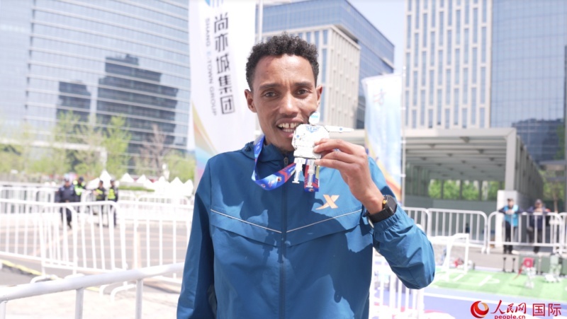 埃塞俄比亞選手圖魯·亞雷德·德梅克獲得本次大賽男子組亞軍。人民網(wǎng)記者 袁蒙攝