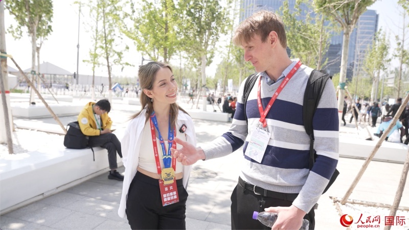 墨西哥的參賽選手阿蘭薩蘇·巴燕(左)與瑞士選手喬文韜。人民網(wǎng)記者 袁蒙攝