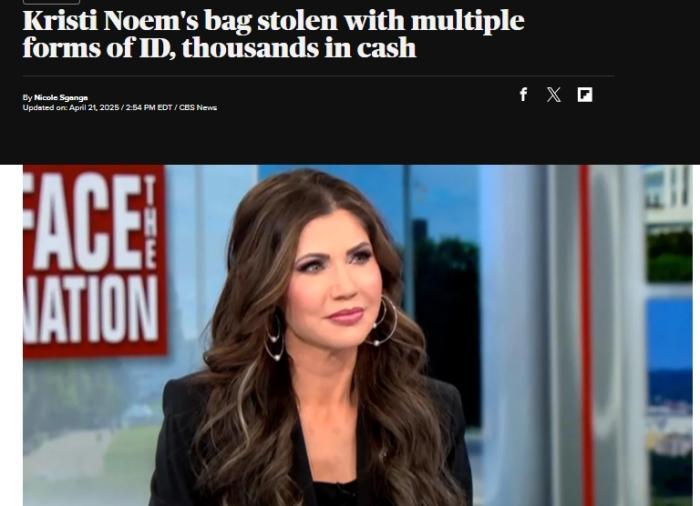 中新網(wǎng)4月22日電 據(jù)美媒21日報(bào)道,當(dāng)?shù)貢r(shí)間20日晚,美國國土安全部部長克麗絲蒂·諾姆的包在華盛頓特區(qū)的一家餐廳內(nèi)被竊。