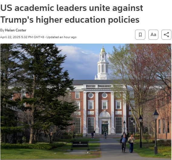 美媒指出,此舉系哈佛大學(xué)指責(zé)政府“威脅其辦學(xué)自主權(quán)”后,美國(guó)學(xué)術(shù)界發(fā)起的集體抗議行動(dòng)。