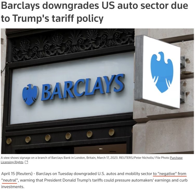 英國巴克萊銀行日前將美國汽車和移動出行行業(yè)的評級從“中性”下調至“負面”,并警告稱,美國的關稅可能會給汽車制造商的盈利帶來壓力并抑制投資。
