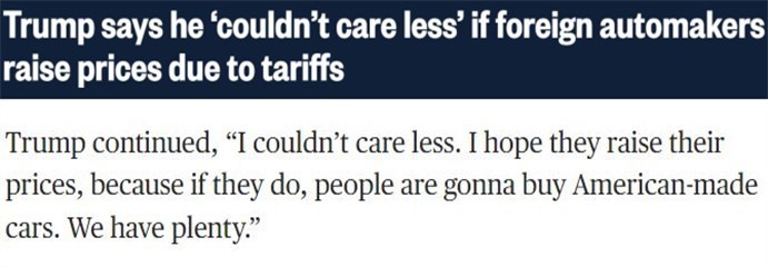 美國總統(tǒng)特朗普曾對媒體表示,他“一點也不在乎”外國汽車制造商是否會以漲價來應對他的關稅措施。
