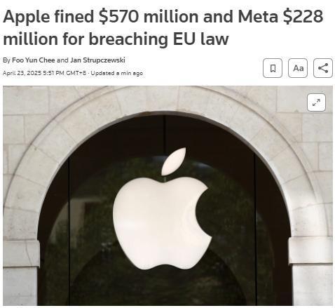 報道稱,歐盟對蘋果、Meta的罰款可能會加劇歐盟與美國總統(tǒng)特朗普之間的緊張關(guān)系,特朗普曾威脅要對那些懲罰美國公司的國家加征關(guān)稅。