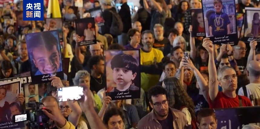 當(dāng)?shù)貢r(shí)間24日,數(shù)百名以色列民眾在特拉維夫舉行抗議。抗議者呼吁實(shí)現(xiàn)巴以和平,要求以色列政府結(jié)束當(dāng)前沖突,稱緩和沖突有助于以色列被扣押人員獲釋。