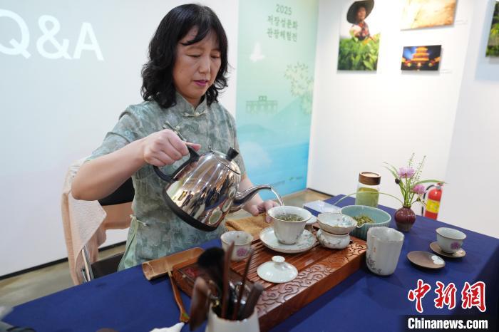 4月25日,“春到江南,相約詩(shī)畫浙江”——2025浙江文化和旅游推廣活動(dòng)在首爾中國(guó)文化中心開(kāi)幕。圖為現(xiàn)場(chǎng)茶文化體驗(yàn)活動(dòng)。中新網(wǎng)記者 劉旭 攝