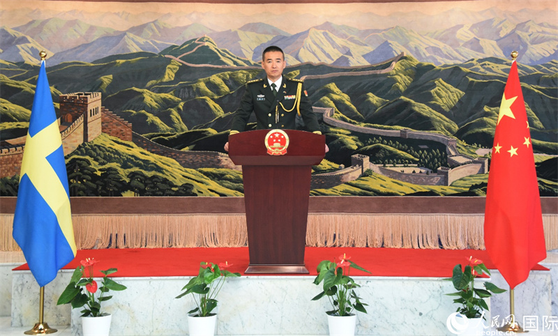 崔愛民致辭表示,中國堅(jiān)持獨(dú)立自主的和平外交政策,面對百年未有之大變局,愿與各國攜手促和平、謀發(fā)展,共同反對單邊主義和霸凌行徑。崔愛民介紹了袁林武官主要履歷,表示將以中瑞建交75周年為契機(jī),推動(dòng)包括軍事交往在內(nèi)的雙邊關(guān)系向前發(fā)展。
