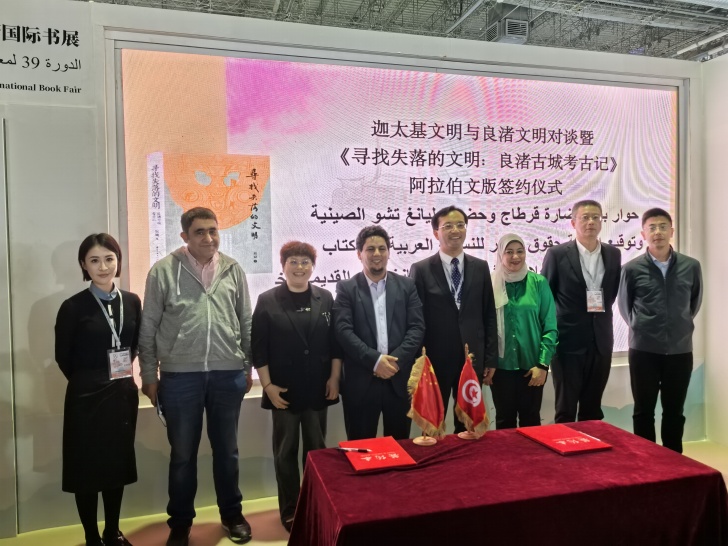人民網(wǎng)突尼斯4月28日電 (記者薛丹、黃培昭)日前,迦太基文明與良渚文明對談暨《尋找失落的文明:良渚古城考古記》阿拉伯文版簽約儀式在突尼斯卡拉姆國際展覽中心舉辦。