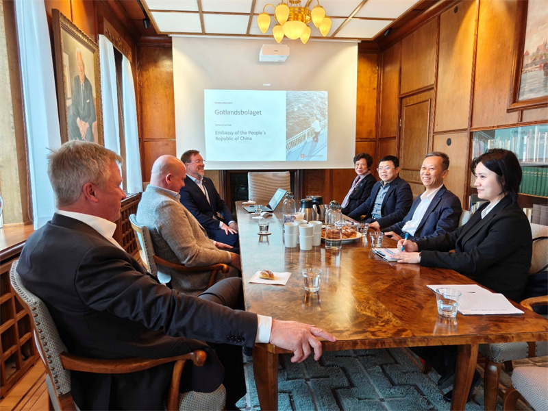 中國(guó)駐瑞典大使崔愛(ài)民會(huì)見(jiàn)瑞典哥特蘭公司首席執(zhí)行官約翰松。中國(guó)駐瑞典大使館供圖