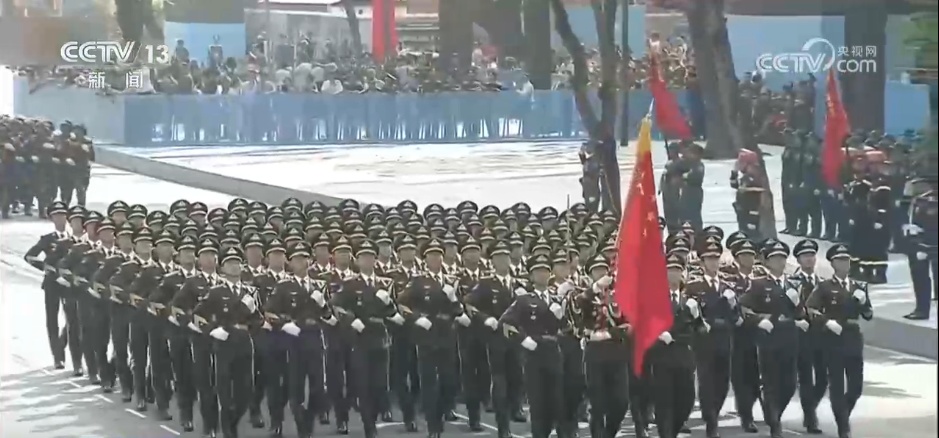 4月30日,中國人民解放軍儀仗司禮大隊(duì)還應(yīng)邀赴越南參加了在胡志明市舉行的紀(jì)念越南南方解放50周年閱兵式。