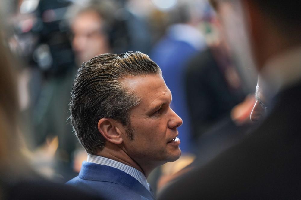 2月13日,在比利時布魯塞爾,美國國防部長赫格塞思在會議現(xiàn)場。新華社記者彭子洋攝