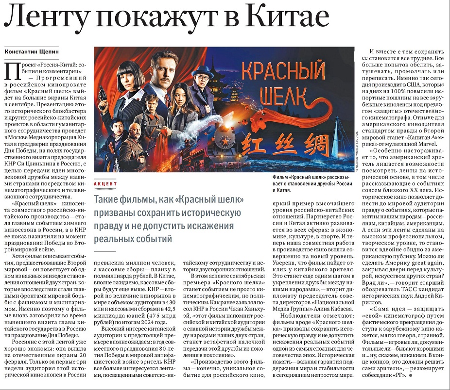 中國觀眾對電影《紅絲綢》充滿期待。因為在共同慶祝世界反法西斯戰(zhàn)爭勝利80周年之際,反映中蘇合作與雙邊關系歷史的影視作品正引發(fā)越來越強烈的共鳴。
