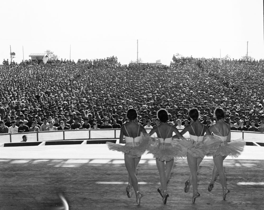 1957年10月,蘇聯國立新西伯利亞歌劇芭蕾舞劇院為北京石景山鋼鐵廠工人演出。