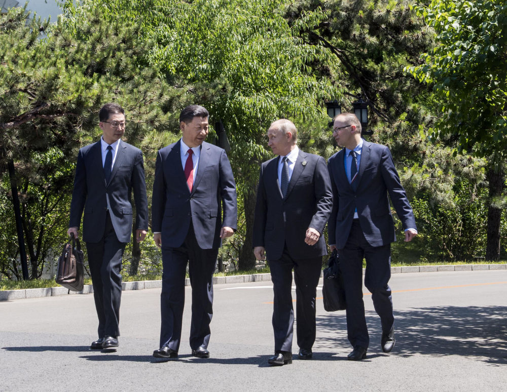 2017年5月14日,國家主席習近平在北京釣魚臺國賓館會見來華出席“一帶一路”國際合作高峰論壇的俄羅斯總統普京。會見后,習近平同普京在釣魚臺國賓館散步。
