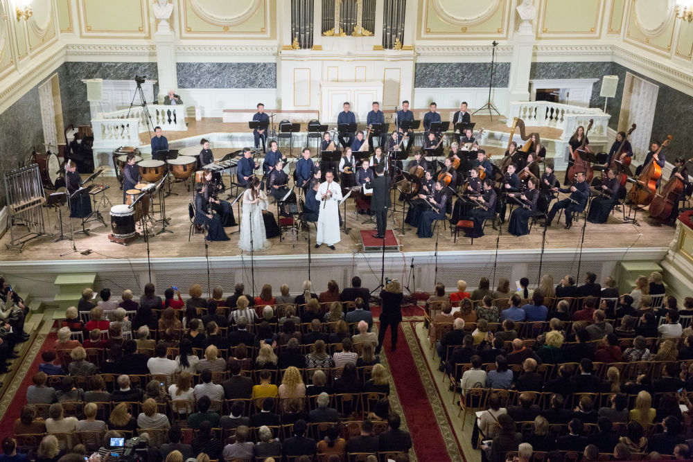 2019年11月13日,在俄羅斯圣彼得堡卡貝拉音樂廳,上海民族樂團與安德烈耶夫國立模范民族樂團的藝術家共同為觀眾獻上了一場名為《海上生民樂·和平頌》的精彩音樂會,開啟了上海民族樂團2019俄羅斯巡演之旅。