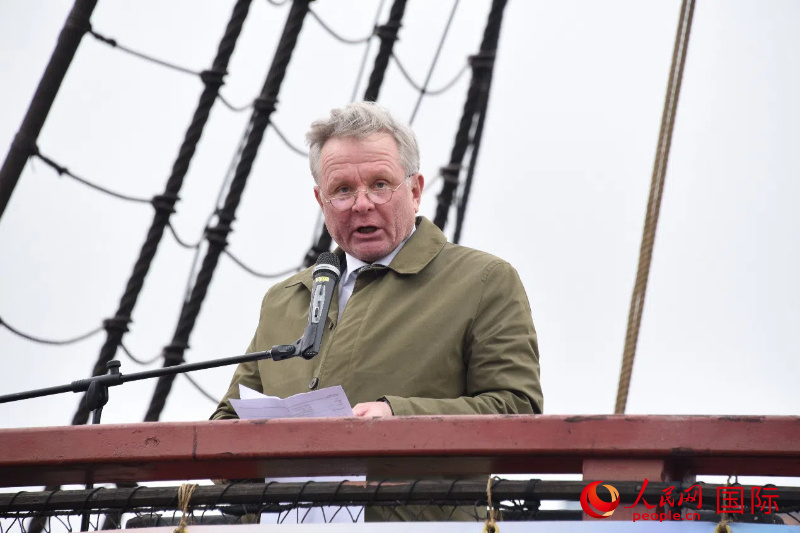 “哥德堡”號船東比約克發(fā)言。人民網記者 殷淼攝