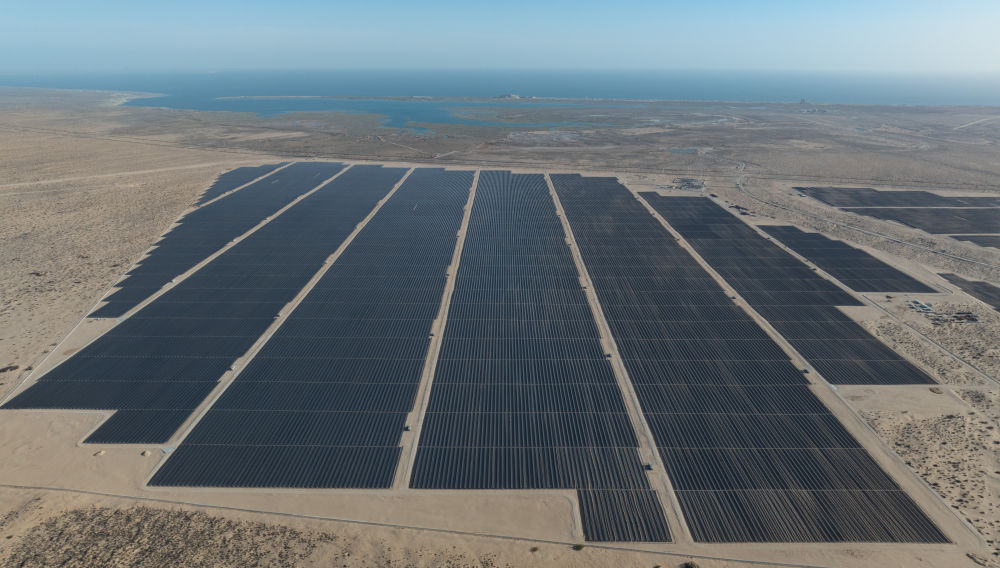 這是2025年4月2日在墨西哥佩尼亞斯科港附近拍攝的中國(guó)能源建設(shè)集團(tuán)承建的佩尼亞斯科港光伏項(xiàng)目二期工程(無(wú)人機(jī)照片)。新華社記者 李夢(mèng)馨 攝