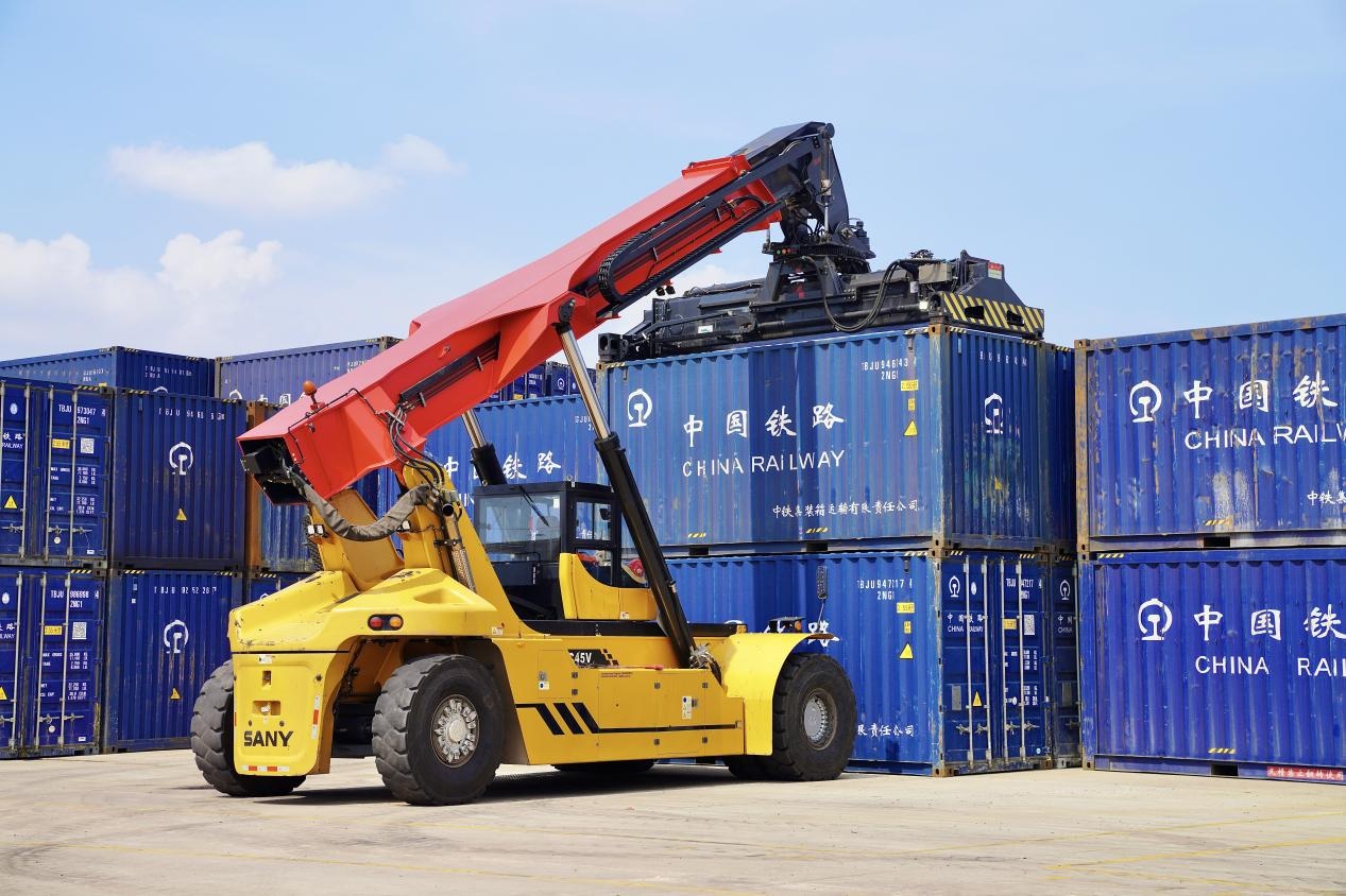 在中老鐵路萬象南鐵路貨運口岸站,起重機正在吊裝集裝箱。劉瑩嘉攝
