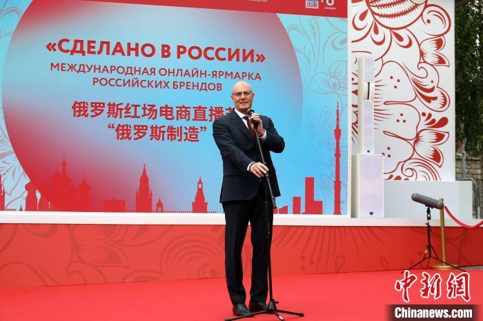 當地時間5月17日,俄羅斯“紅場電商直播節(jié)”在莫斯科紅場旁的扎里亞季耶公園舉行。圖為俄羅斯政府副總理切爾內申科出席活動啟動儀式并致辭。中新社記者 田冰 攝
