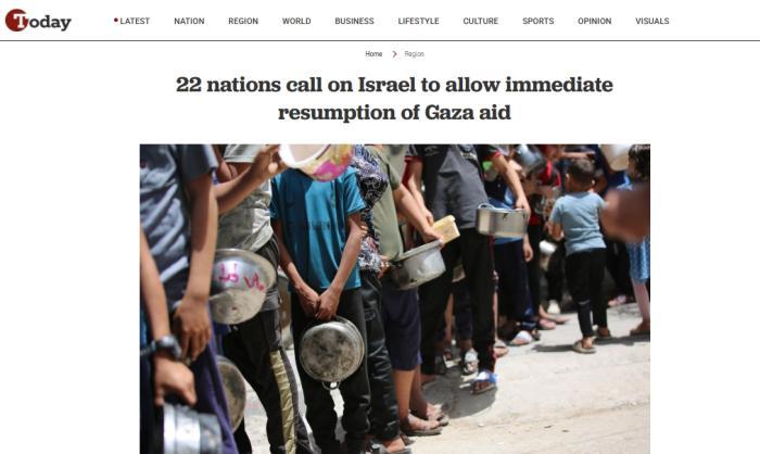 中新網(wǎng)5月21日電 據(jù)土耳其媒體20日報(bào)道,包括英國、法國、德國在內(nèi)等22個(gè)國家聯(lián)合呼吁以色列立即允許全面恢復(fù)對加沙地帶的人道主義援助,加沙地帶的居民面臨著嚴(yán)重的食品、藥品和生活必需品短缺。