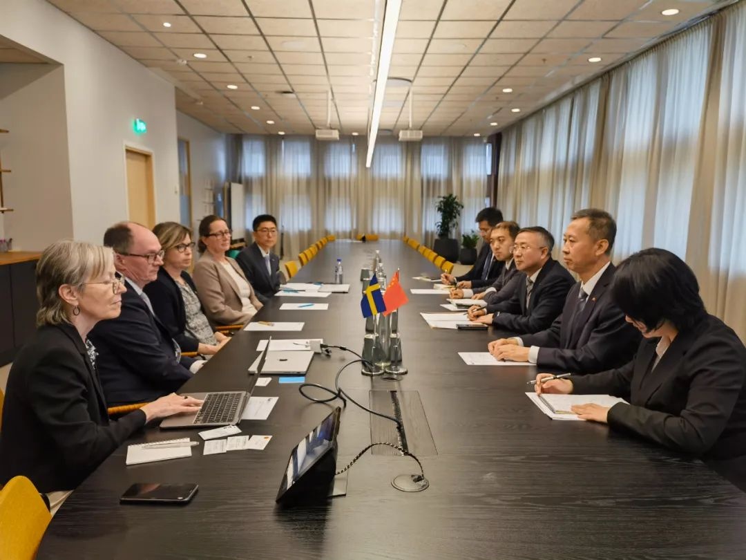 中國駐瑞典大使崔愛民會見林雪平大學校長云松。中國駐瑞典大使館供圖