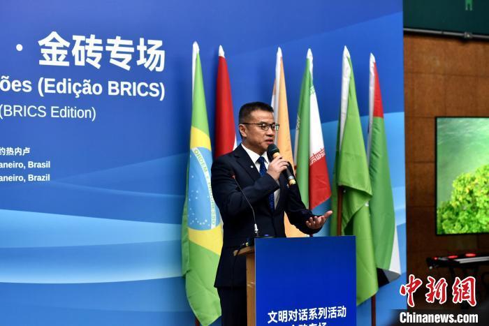 當(dāng)?shù)貢r間6月27日,文明對話系列活動(金磚專場)在巴西里約熱內(nèi)盧舉行。中國海油巴西公司總經(jīng)理黃業(yè)華在金磚國家友好故事會上演講。中新社記者 林春茵 攝