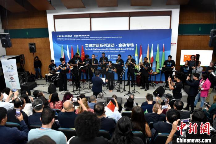 當(dāng)?shù)貢r間6月27日,文明對話系列活動(金磚專場)在巴西里約熱內(nèi)盧舉行。中企資助的巴西科帕卡巴納要塞管弦樂團進行開幕演出。中新社記者 林春茵 攝