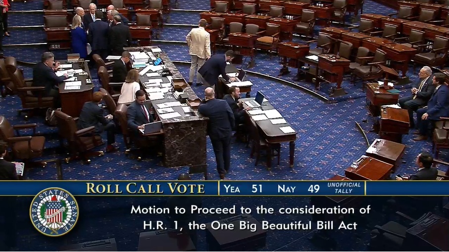 當(dāng)?shù)貢r(shí)間6月28日,美國(guó)參議院以51對(duì)49的票數(shù)比通過(guò)一項(xiàng)程序性動(dòng)議,這項(xiàng)動(dòng)議旨在推進(jìn)被美國(guó)總統(tǒng)特朗普稱為“大而美”的大規(guī)模稅收與支出法案。美國(guó)參議院程序性投票通過(guò)后,未來(lái)幾天法案通過(guò)的可能性增加。