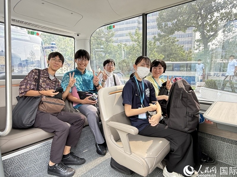 沖繩大學(xué)生訪華團試乘無人駕駛小巴。人民網(wǎng)記者 陳思攝