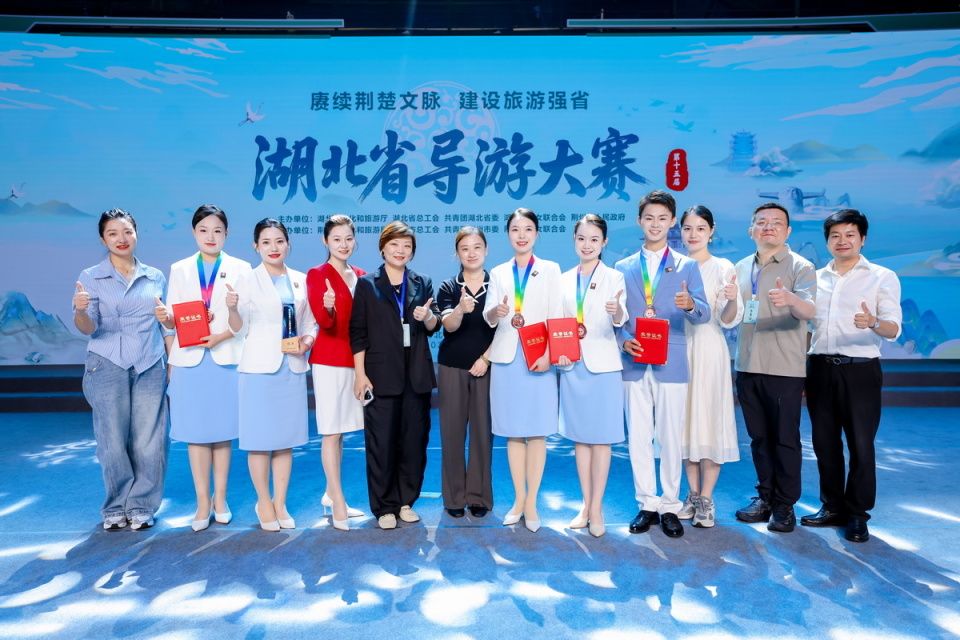 在長江經(jīng)濟(jì)帶高質(zhì)量發(fā)展與中部地區(qū)崛起戰(zhàn)略深入推進(jìn)的關(guān)鍵節(jié)點(diǎn),湖北省第十五屆導(dǎo)游大賽于6月24日至28日在荊州市圓滿舉辦。這場以“賡續(xù)荊楚文脈?建設(shè)旅游強(qiáng)省”為主題的行業(yè)盛會,不僅是湖北導(dǎo)游人才的巔峰對決,更是全省文旅產(chǎn)業(yè)對標(biāo)國家戰(zhàn)略、邁向國際一流的重要實(shí)踐,為建設(shè)世界知名文化旅游目的地注入強(qiáng)勁動力。經(jīng)過4天激烈對決,武漢代表隊(duì)張玲、荊州代表隊(duì)曹寰蓓、十堰選手張凡榮獲湖北省第十五屆導(dǎo)游大賽金獎。武漢市代表隊(duì)張玲獲得本屆導(dǎo)游大賽最佳講解獎、最佳創(chuàng)作獎,黃岡市代表隊(duì)楊歡獲得本屆導(dǎo)游大賽最佳服務(wù)獎,宜昌市代表隊(duì)鄭芙蓉獲得本屆導(dǎo)游大賽最佳風(fēng)采獎。