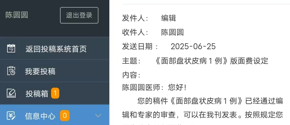 荊楚網(wǎng)(湖北日報(bào)網(wǎng))訊(通訊員 葉文正)近日,孝感市中心醫(yī)院皮膚科在罕見皮膚病診療領(lǐng)域取得重大突破。由該科醫(yī)師陳圓圓作為第一作者、醫(yī)師葉文正作為通訊作者撰寫的臨床病例報(bào)告《面部盤狀皮病1例》,被國內(nèi)皮膚科權(quán)威核心期刊《中國皮膚性病學(xué)雜志》接收,即將正式刊發(fā)。