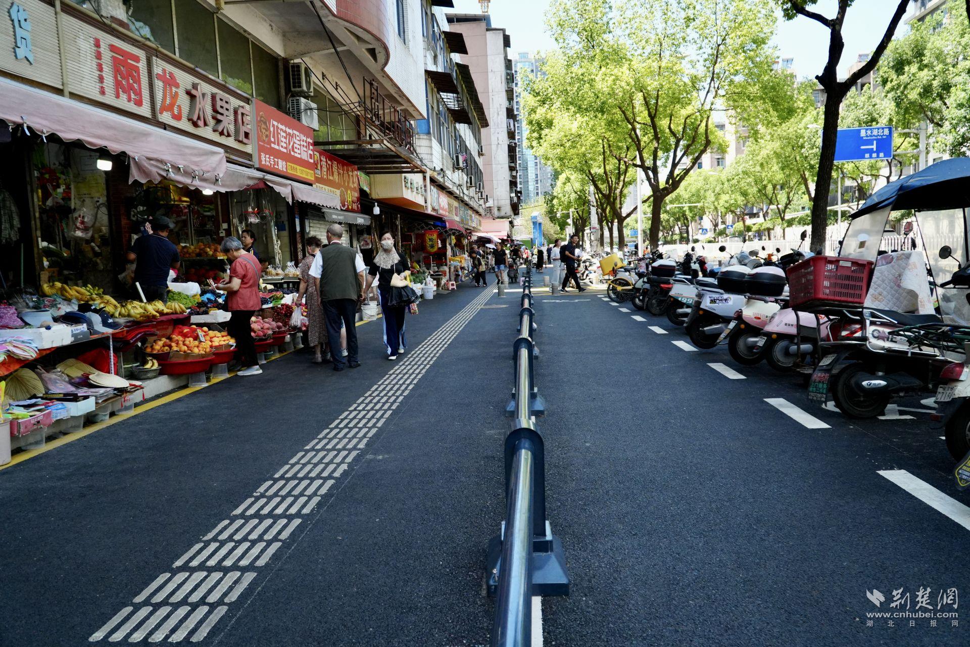 現(xiàn)在,瀝青路面平整干凈,人行道、非機動車道清晰分隔;370米護欄有效實現(xiàn)人車分流;桂花樹與香樟樹點綴街頭,市場顏值大大提升。而市場外圍的“外擺線”,也讓攤販有序經(jīng)營、秩序井然。