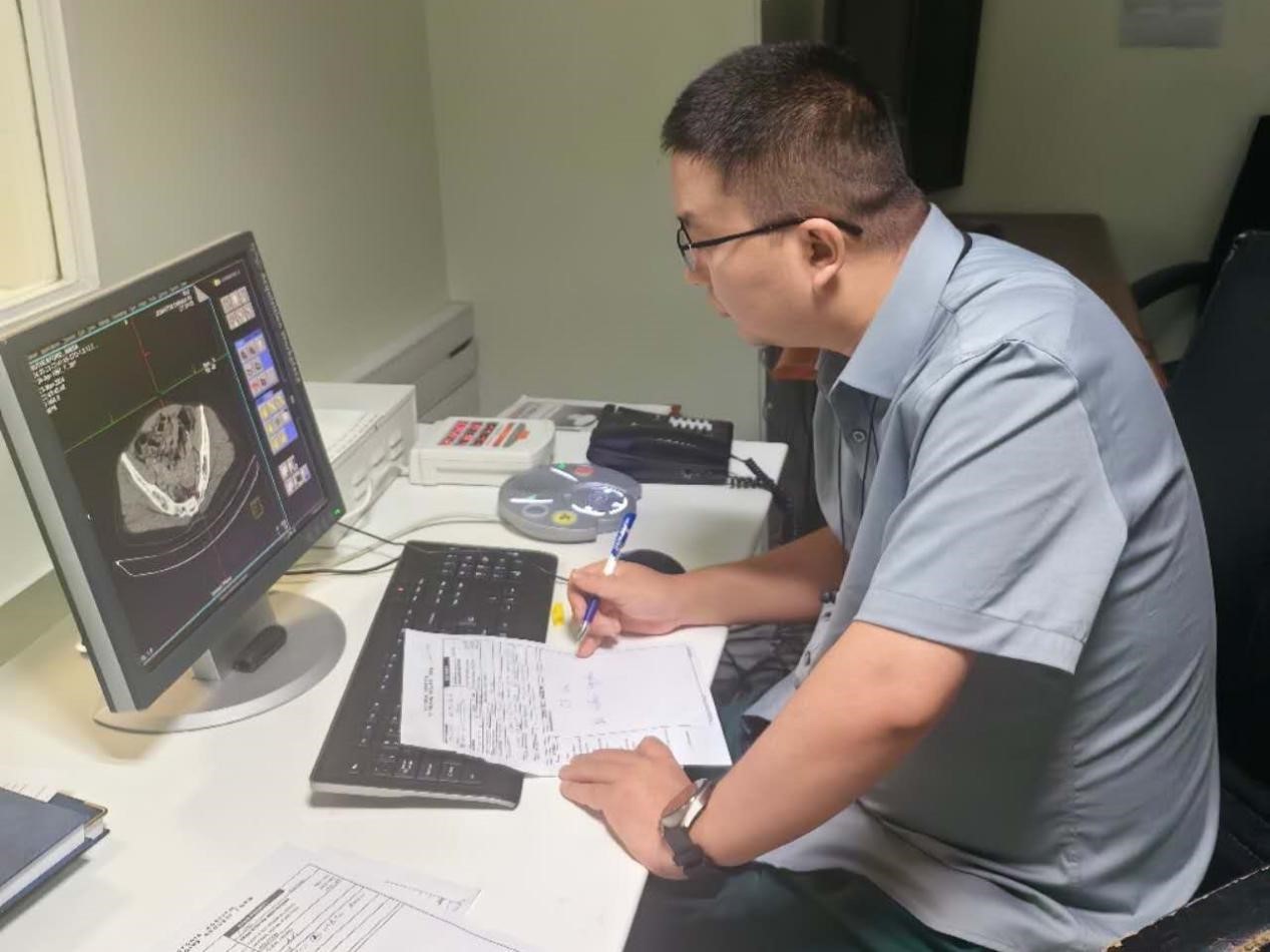 醫(yī)療隊(duì)隊(duì)員孫世寧為患者做影像檢查。醫(yī)療隊(duì)供圖