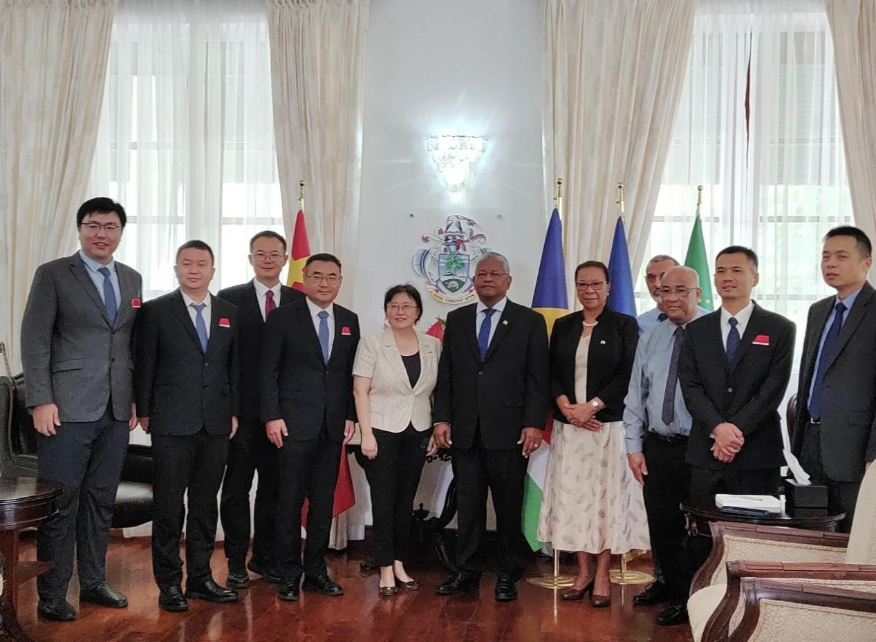 塞舌爾總統(tǒng)拉姆卡拉旺在首都維多利亞接見中國第19批援塞醫(yī)療隊(duì)。醫(yī)療隊(duì)供圖
