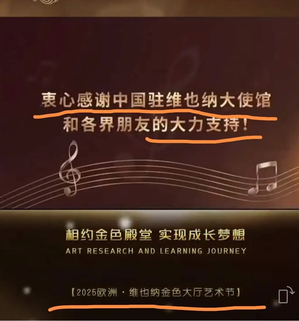 央視網(wǎng)消息:據(jù)中國(guó)駐奧地利使館微信公眾號(hào)消息,近日,抖音和網(wǎng)絡(luò)上出現(xiàn)某“金色大廳藝術(shù)節(jié)”相關(guān)信息,聲稱“衷心感謝中國(guó)駐維也納大使館和各界朋友的大力支持!”中國(guó)駐奧地利使館對(duì)此鄭重聲明,對(duì)該活動(dòng)不知情,未以任何形式參與,并保留追究相關(guān)責(zé)任的權(quán)利。