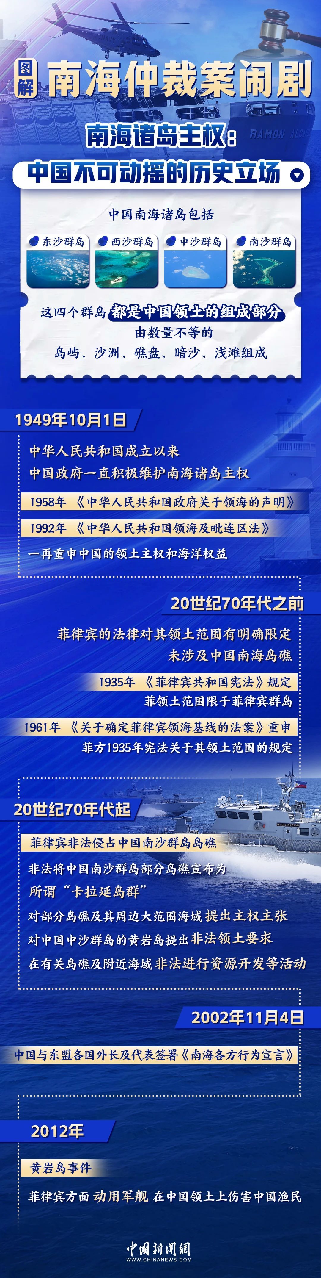 中新網(wǎng)7月12日電 2016年7月12日,應(yīng)菲律賓單方面請求建立的南海仲裁案仲裁庭炮制所謂最終裁決,企圖否定中國在南海的領(lǐng)土主權(quán)。中國始終堅持“不接受、不參與、不承認”的官方立場,只因這場打著國際法幌子的鬧劇,刻意掩蓋了南海問題的真相。
