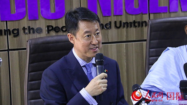 中國駐尼日利亞大使于敦海在“你好!中國”節(jié)目啟動儀式上致辭。人民網(wǎng)記者 姜宣攝