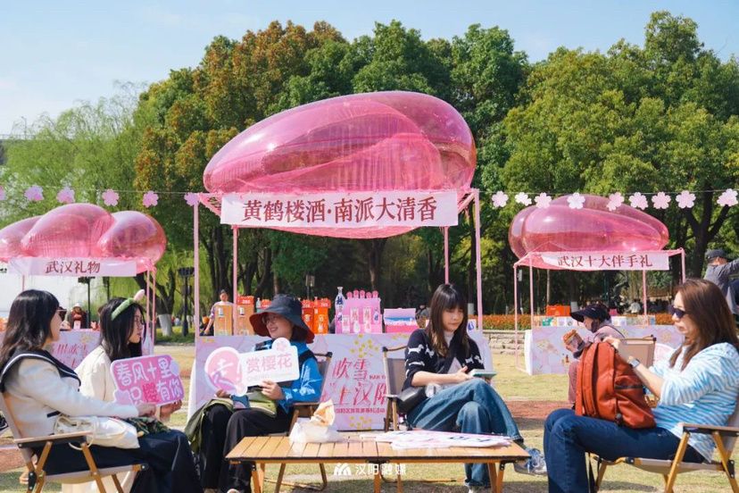 2025年櫻花季,晴川吹雪·粉上漢陽活動在大禹神話園舉行,現(xiàn)場集市受市民歡迎。